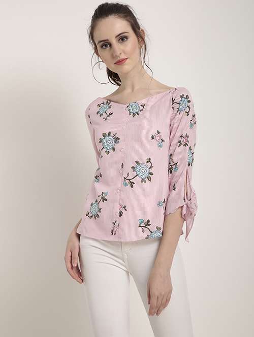 - » boat neck floral embroidered top