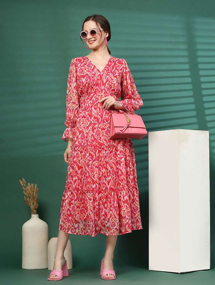 - » women pink printed a-line dress