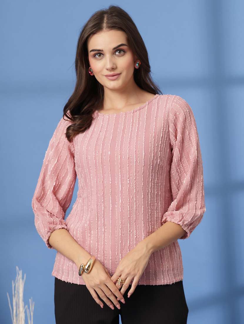 - » women self designed round neck regular top