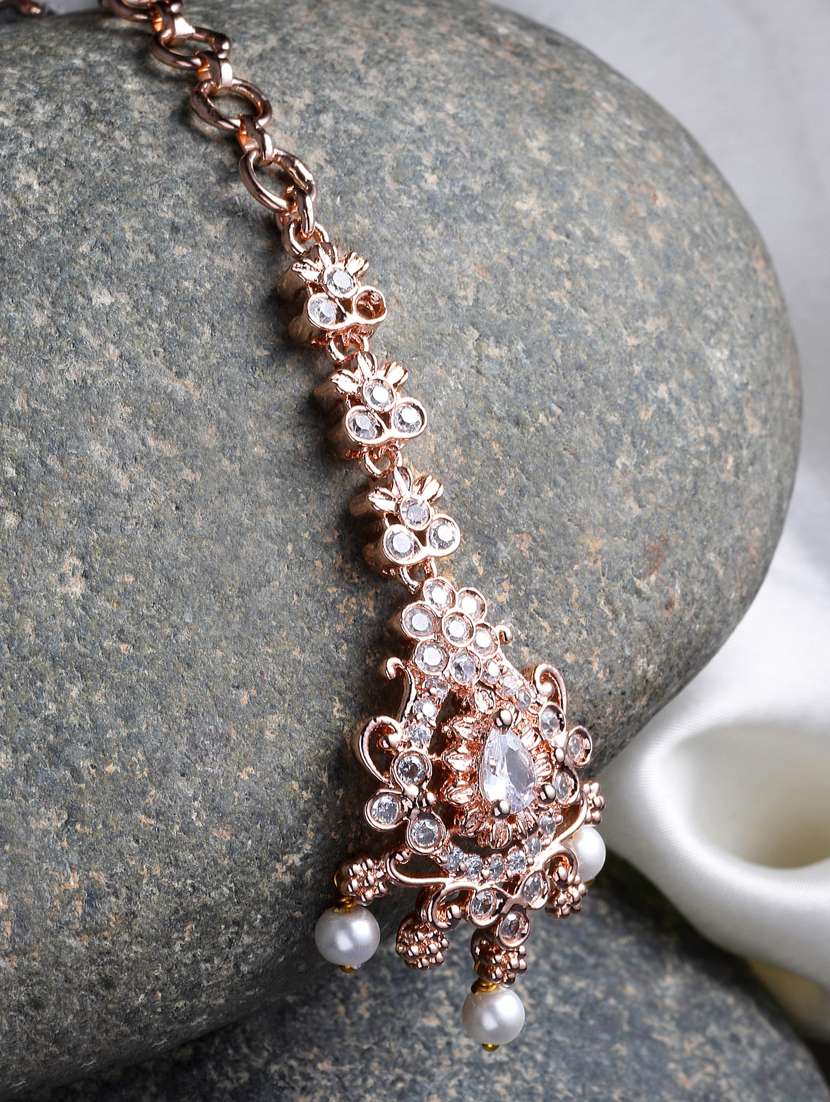 pink metal maang teekas & passa - 18636123 - Very Small Image - 1