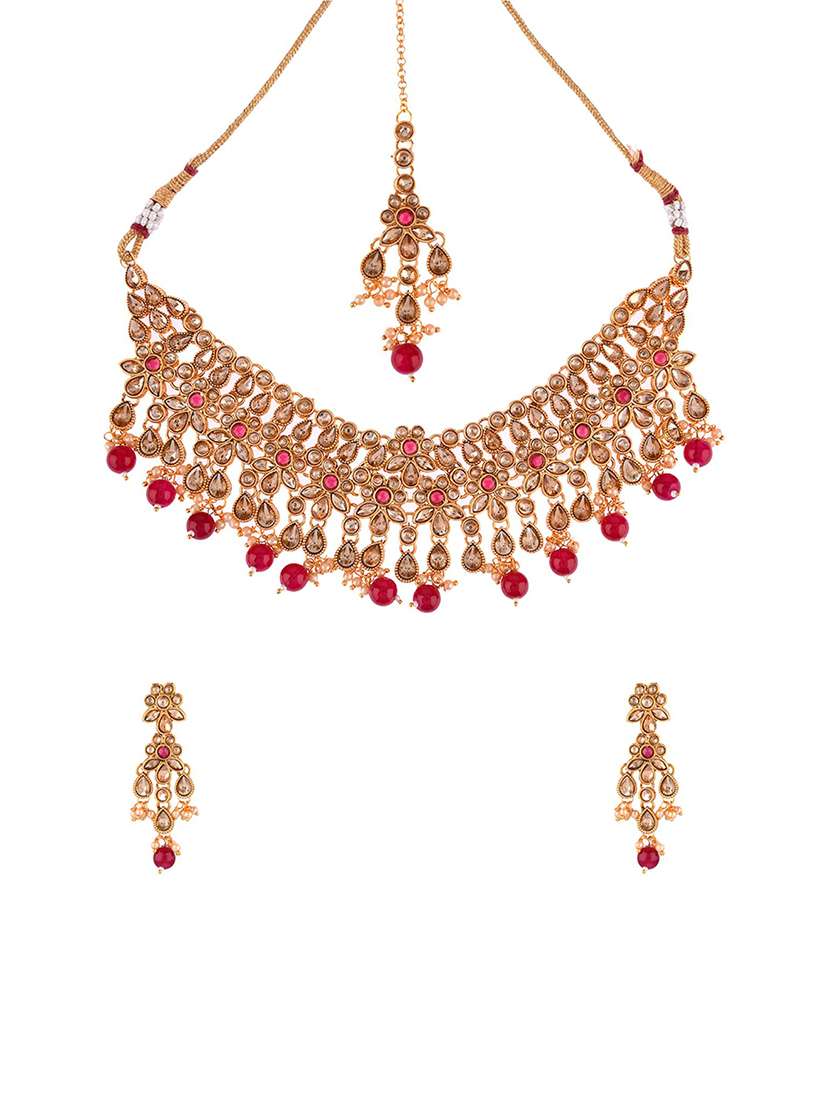 - » pink kundan choker necklace earring maangtika set