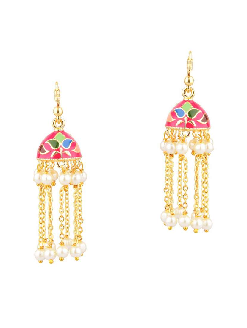 - » pink metal jhumka earring
