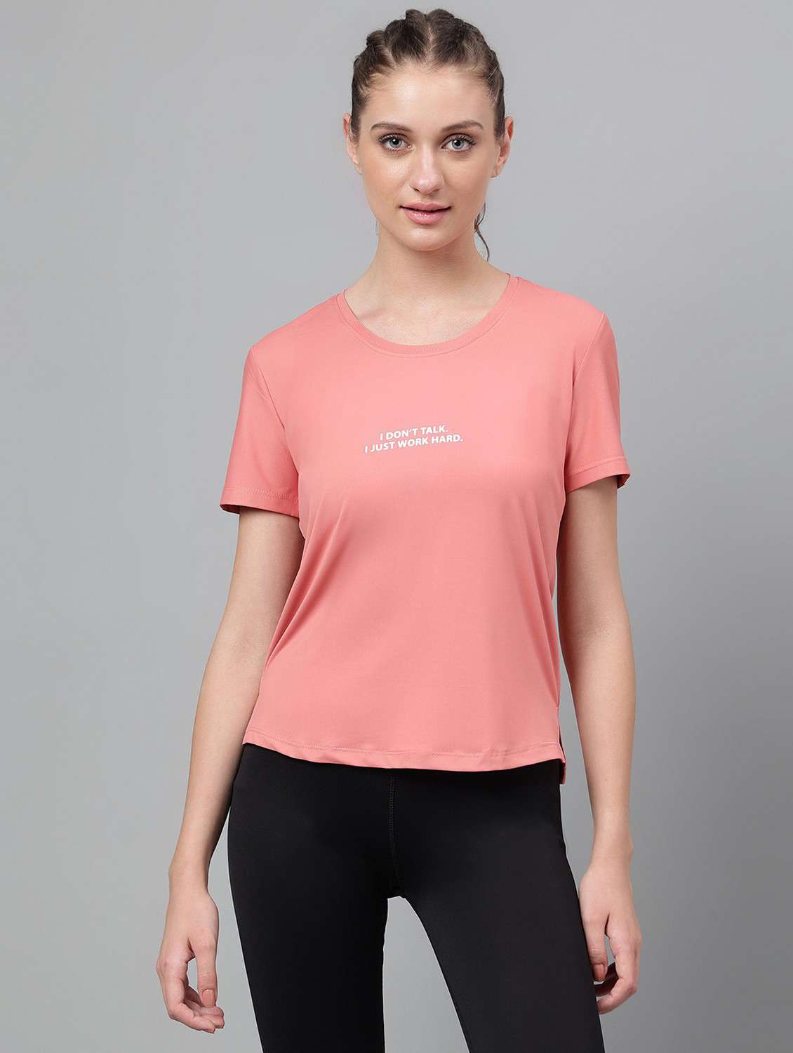 - » women printed dri-fit high low sports t-shirt