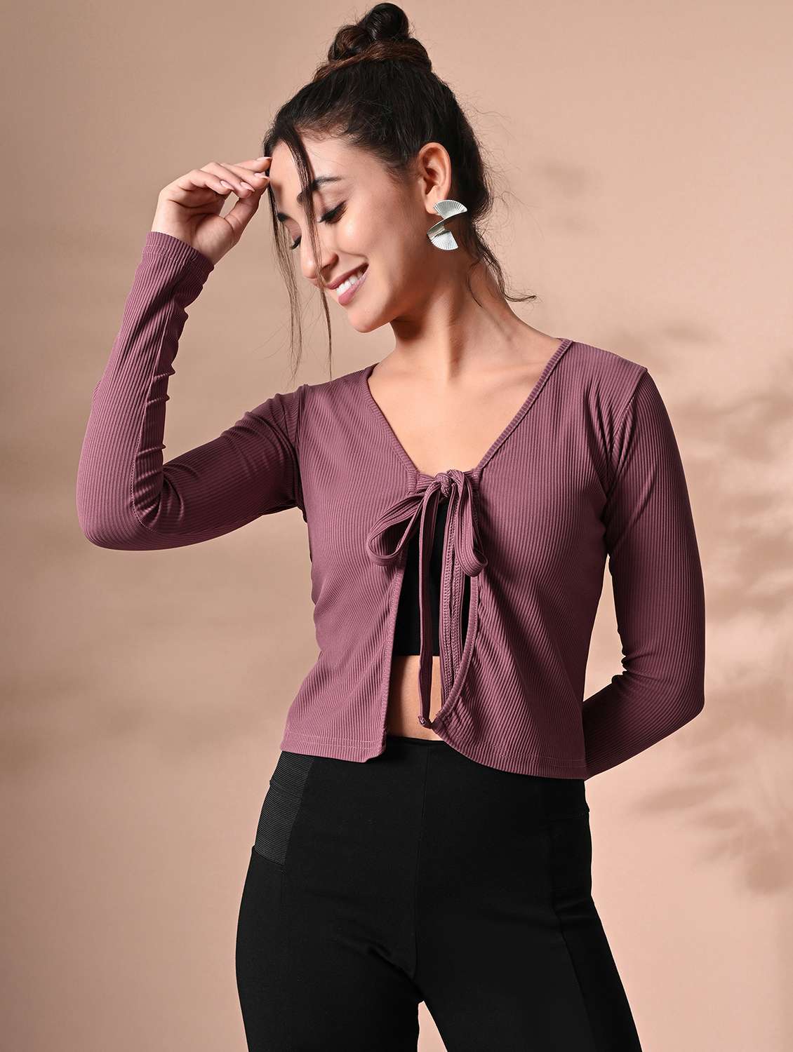 - » women solid long sleeves shrug