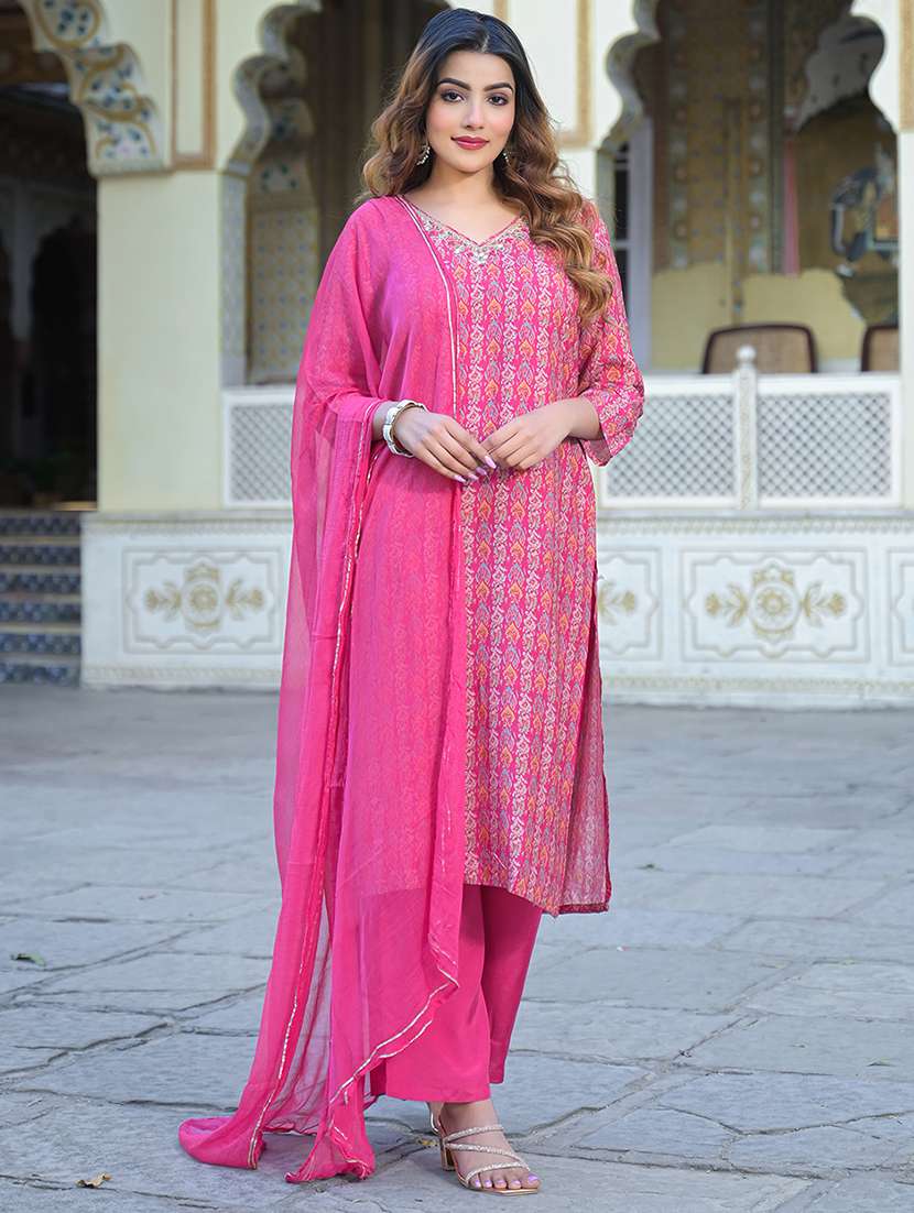 - Find gorgeous sets of ethnic wears in trending designs in pink colors suitable for casual wear of occasions.
