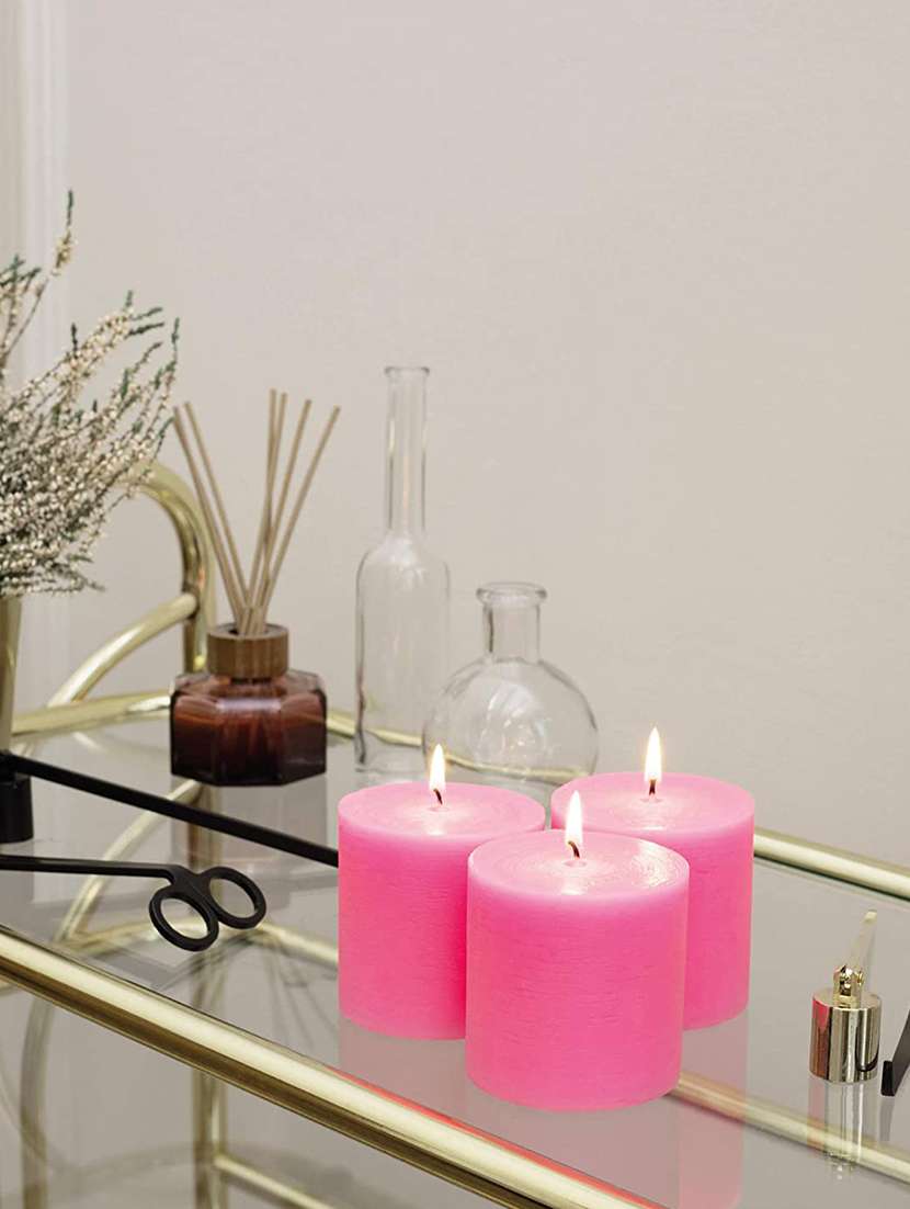 - » pink 3 inch mogra fragrance set of 3 pillar candles