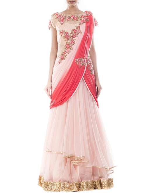 - » light pink embroidered gown saree with blouse
