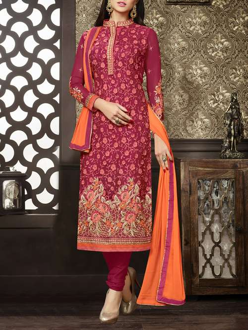 - » pink embroidered churidaar suits semi-stitched suit