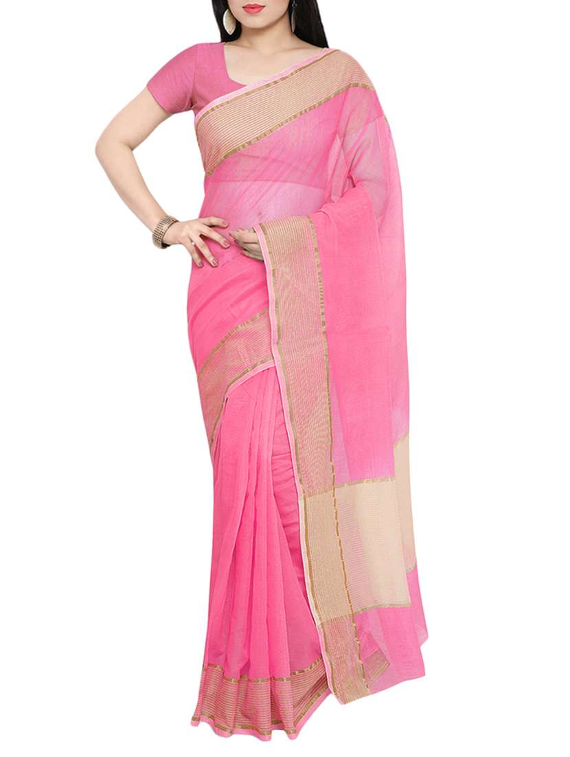 pink super net bordered saree with blouse - 13857151 - Very Small Image - 1