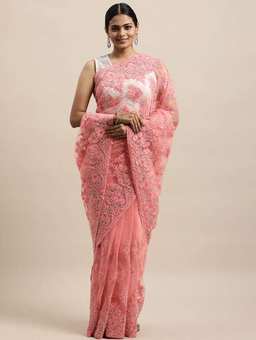 pink net embroidered saree with blouse - 18323132 - Very Small Image - 1