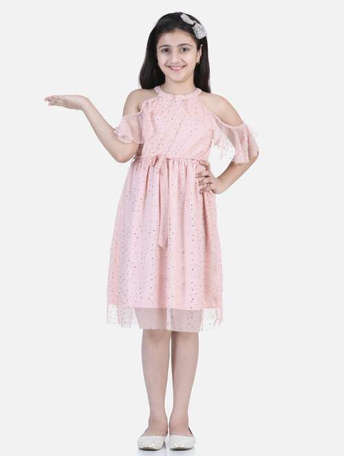 - Dress up your little ones in frocks featuring pretty patterns in net .
