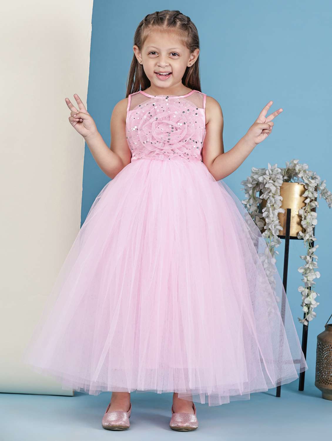 Toy Balloon Kids Pink Gown Girls Party Wear Dress