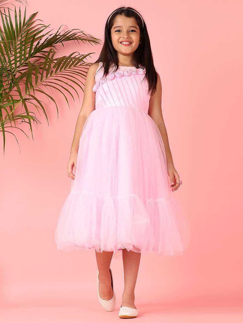 - Wondering where to buy frocks for your little ones? Get them from V-Mart in pink colours.
