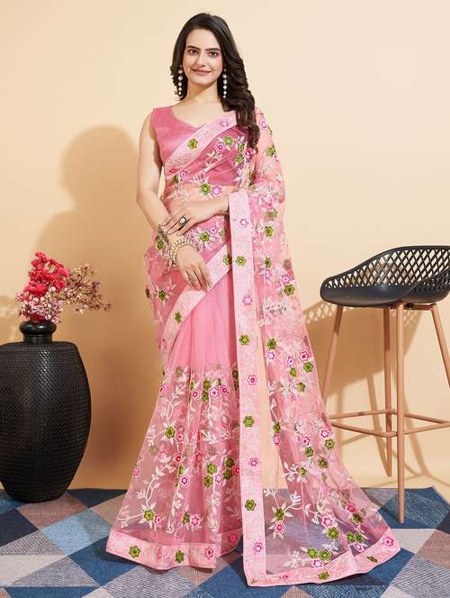 - » women pink embroidered saree with blouse