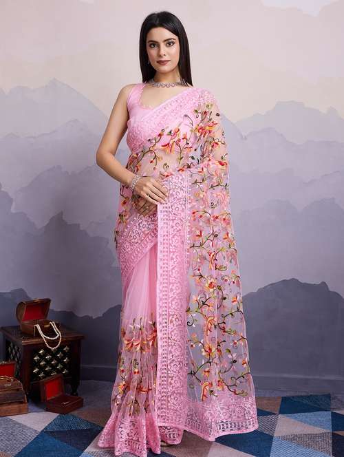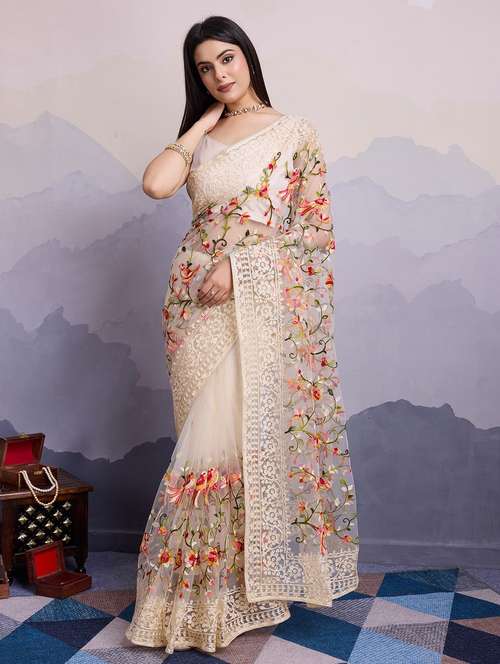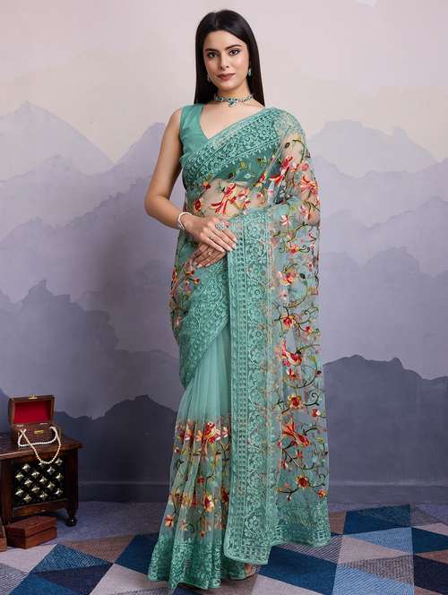 Vairagee Soft Net Embroidery Saree & Mono Banglory Blouse