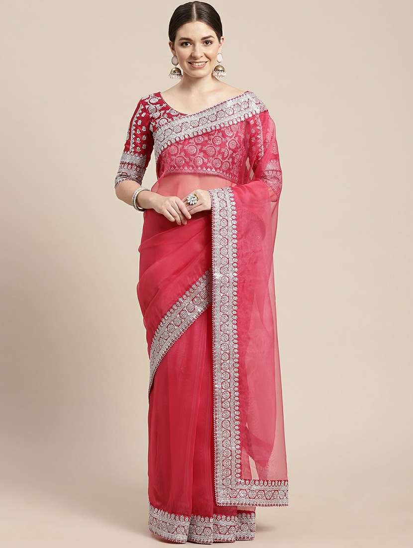 - » women's bordered pink colored saree with blouse