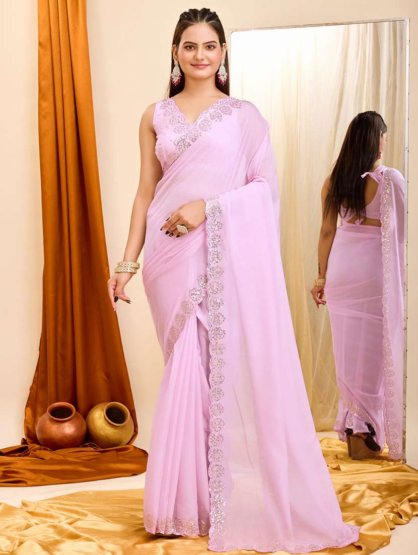 women pink sequin work saree with blouse