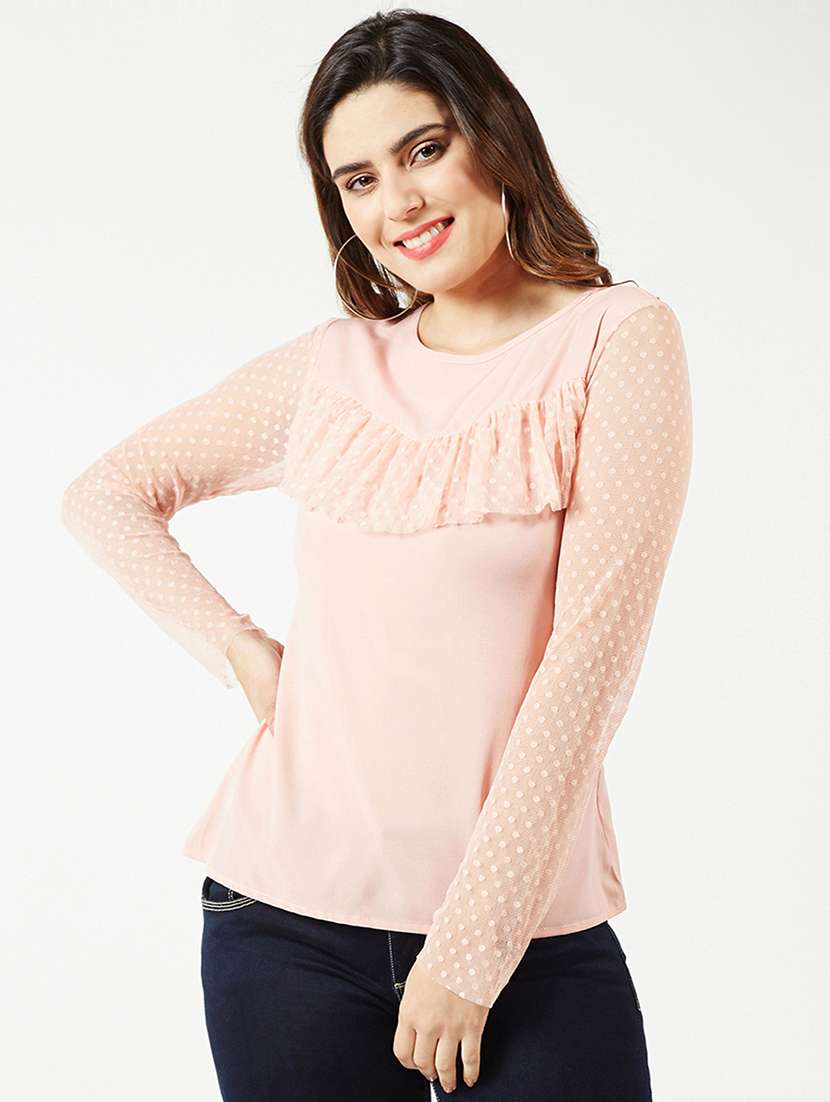 dotted mesh ruffle detail top - 16274812 - Very Small Image - 1