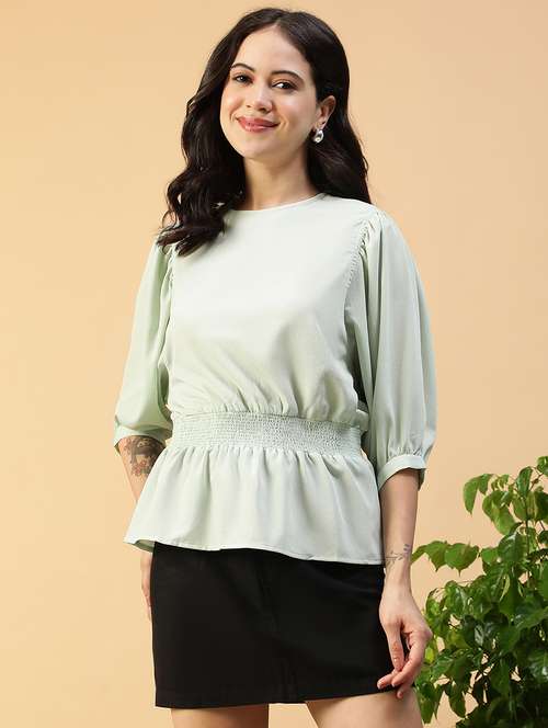 - » women solid puff sleeve peplum top