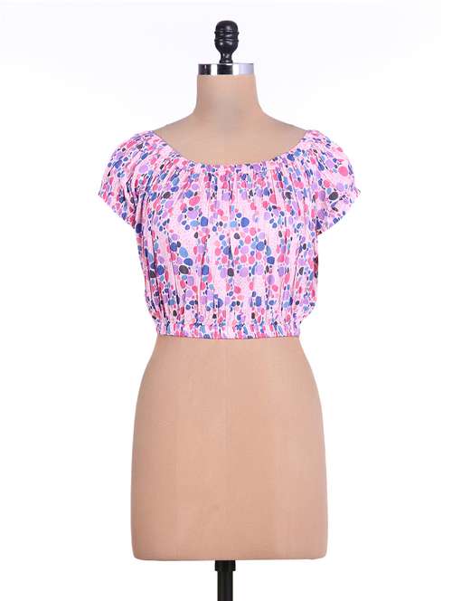 pink polka dotted rayon crop top