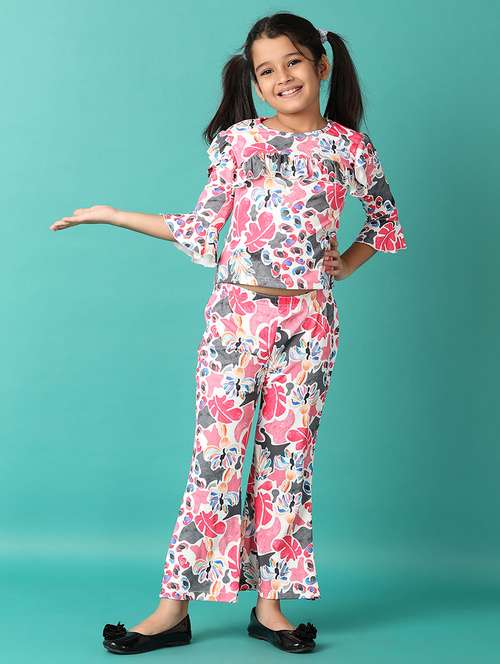 - » girls printed round neck top & trouser set