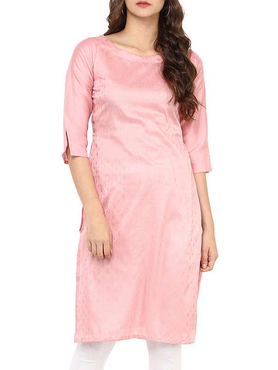 pink silk blend straight kurta