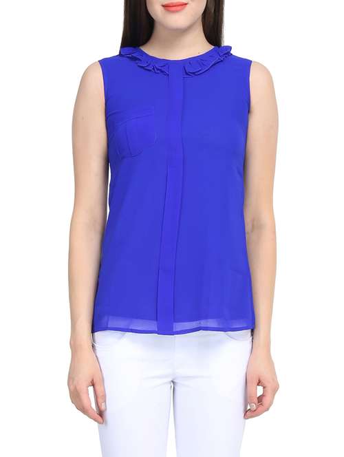 - Opt for this top made up of polyester material and get it in a varied neck design.