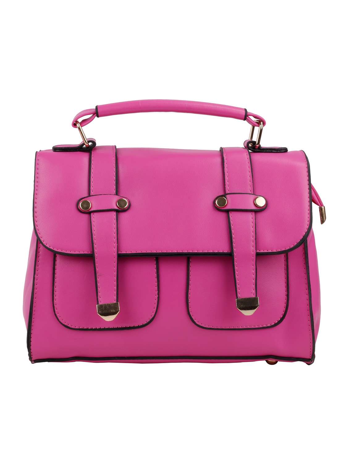 • Elevate your fashion quotient in no time with polyester leatherette satchels in pink colours.