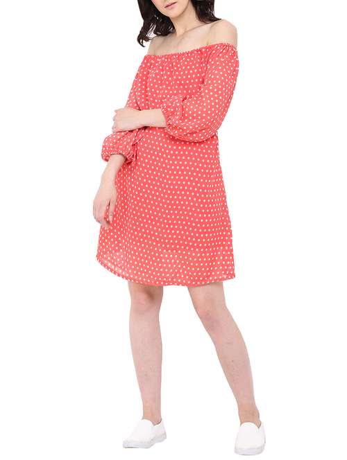 - » pink polka dots printed belted dress