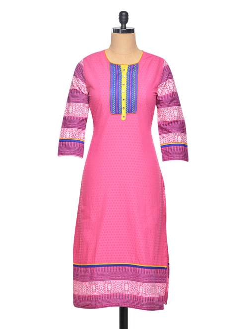 pink cotton straight kurta