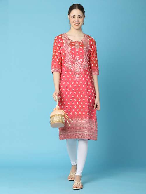 - Grab this beautiful kurta made up of cotton fabric featuring round neck designs.