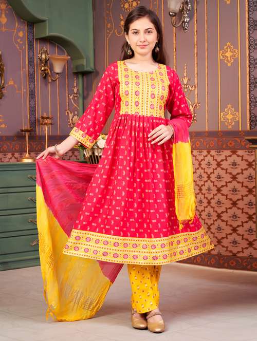 - » girls three quarter sleeve kurta pant with dupatta set