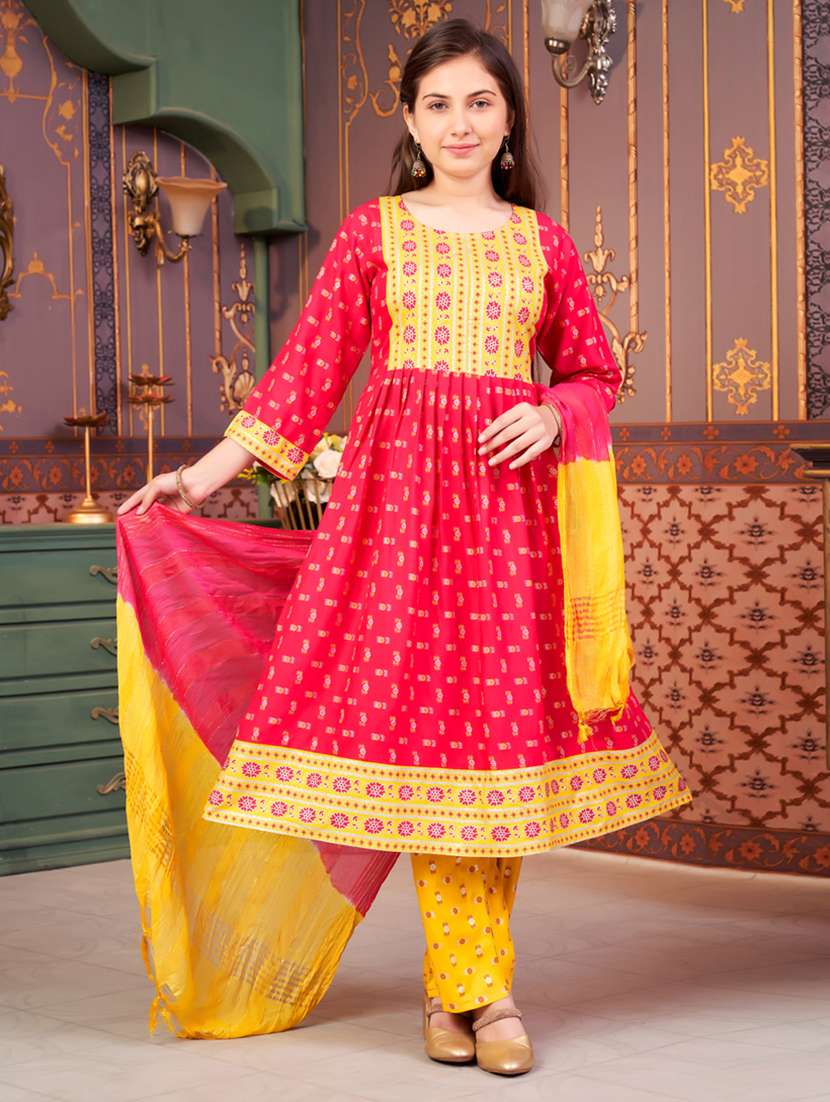 girls three quarter sleeve kurta pant with dupatta set