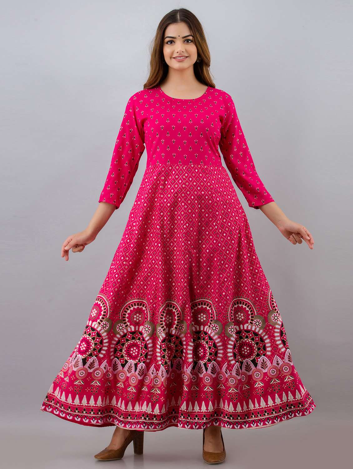 pink printed flared kurta