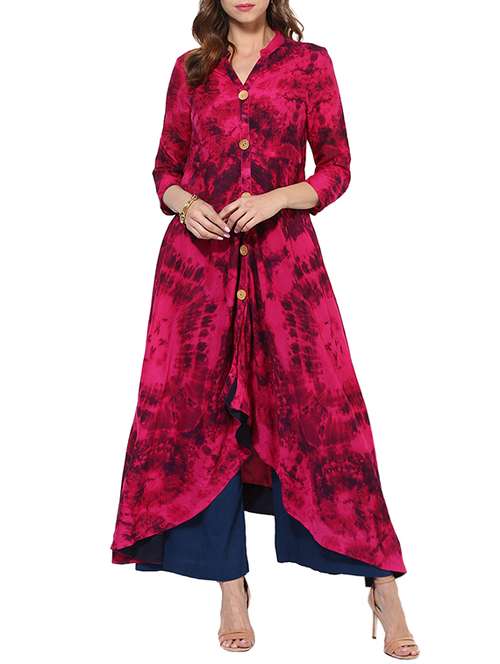 - » pink rayon printed asymmetric kurta