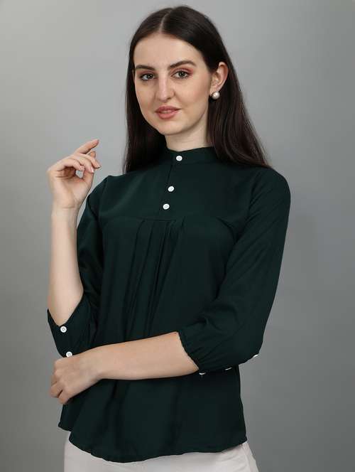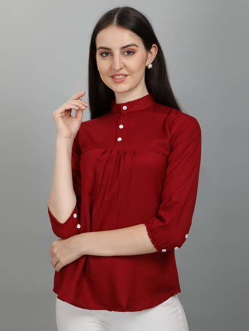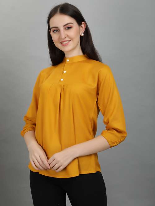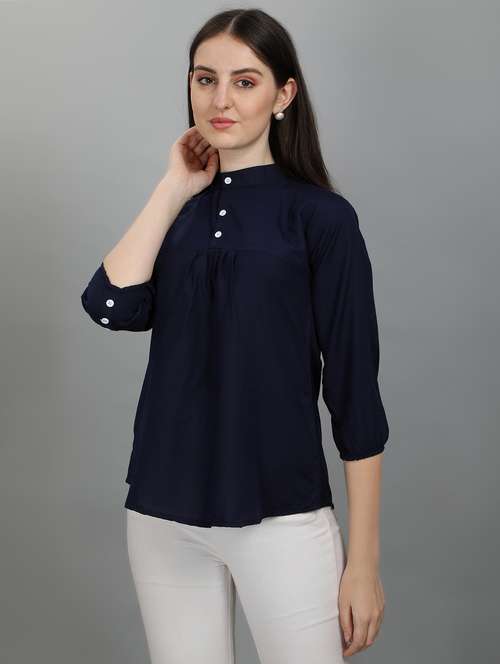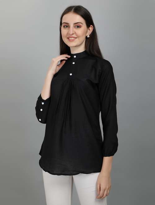 - Opt for this top made up of rayon material and get it in a mandarin neck design.