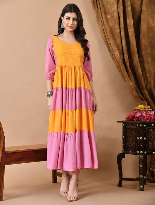 - LimeRoad brings to you the classic range of rayon ethnic dresses handcrafted with skilled art to give you an effortless traditional look.
