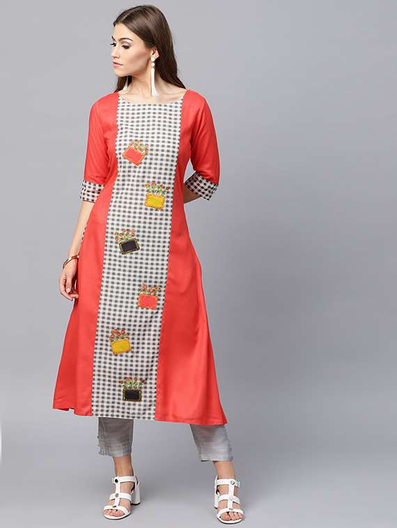 - Grab this beautiful kurta made up of viscose fabric featuring round neck designs.