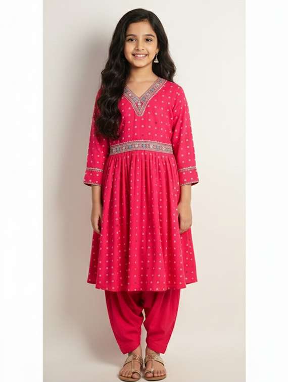 girls printed three quarter sleeve kurta - 22278372 -  Standard Image - 2 girls printed three quarter sleeve kurta - 22278372 -  Zoom Image - 2