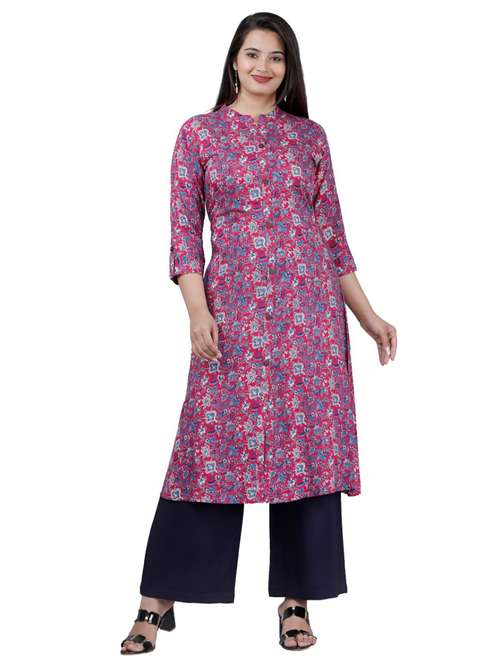 mandarin neck floral printed kurta palazzo set - 20132970 - Very Small Image - 1