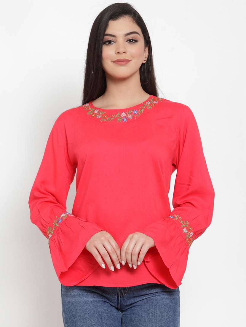- » embroidered detail bell sleeves top