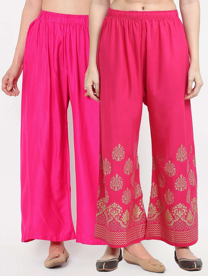 COMBO OF SOLID AND PRINTED PALAZZO IN RAYON FABRIC, WITH FULLY ELASTICTAED WAISTBAND,SLIP ON CLOSURE.