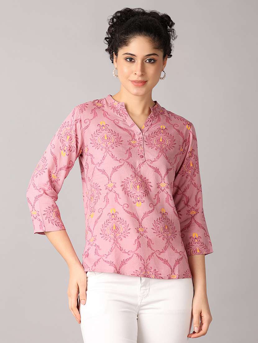 - » women mandarin neck printed regular top