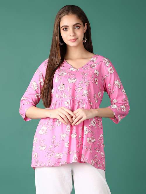 - » women floral three quarter sleeve a-line kurti