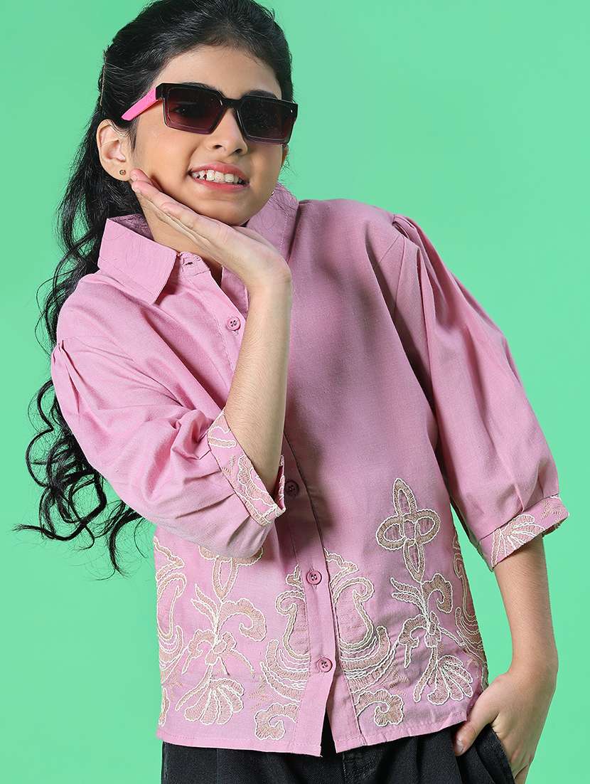 - » girls embroidered three quarter sleeve top