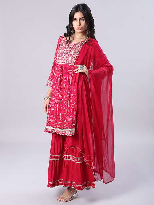 - Find gorgeous sets of ethnic wears in trending designs in pink colors suitable for casual wear of occasions.