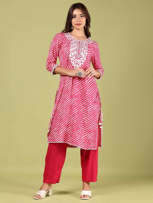 - Find gorgeous sets of ethnic wears in trending designs in pink colors suitable for casual wear of occasions.