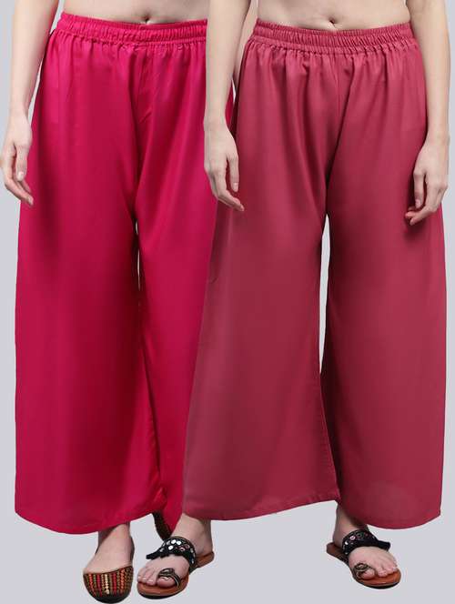 Upgrade your collection of warm-weather staples with these top-notch Pink and Pink palazzo combo by Valles365. Pair them with a flowy tee and lace-up sandals for a super chic look.