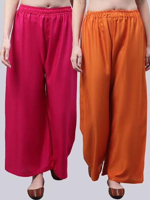 Upgrade your collection of warm-weather staples with these top-notch Rust Orange and Dark Pink palazzo combo by Valles365. Pair them with a flowy tee and lace-up sandals for a super chic look.