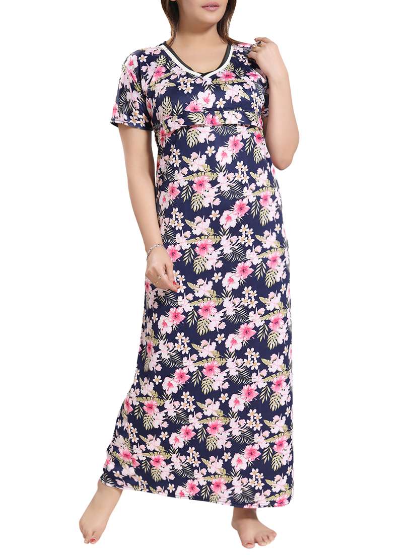 This printed gown has concealed zip closure on both sides for nursing purpose & half sleeves.
